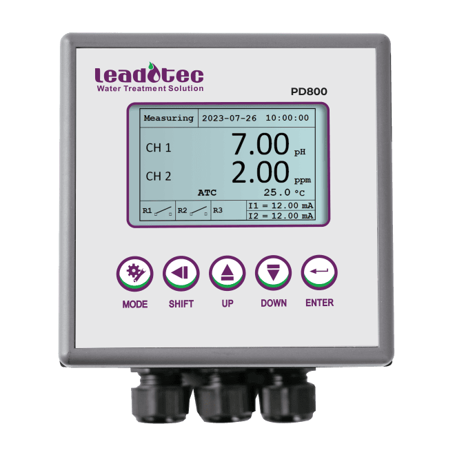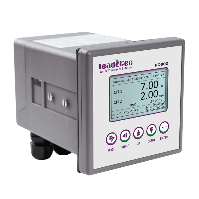Leadtec Dual Channel pH & Dissolved Oxygen (Polarographic Type) controllers provide unparalleled ease of use for measuring pH and ORP. With a minimalist design, they offer more convenient operation than other analyzers, featuring a user-friendly step-by-step interface for easy calibration and operation.